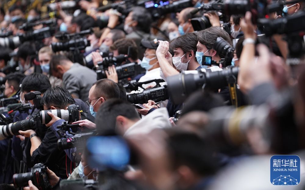 10月22日,中国共产党第二十次全国代表大会闭幕会在北京人民大会堂举行。这是记者在采访拍摄。新华社记者 陈晔华 摄