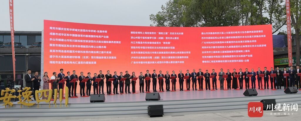 省委常委、宣传部部长郑莉主持开幕式。南充市委书记朱家德、文化和旅游部产业发展司司长缪沐阳先后致辞。亚太旅游协会主席彼得·西蒙视频致辞。副省长罗强推介2022年四川省文化和旅游重点投资项目。德国途易集团中旅途易首席执行官卜贵多对四川文旅作了视频推介。华强方特文化科技集团总裁刘道强发言。现场举行了文旅重大项目集中签约。