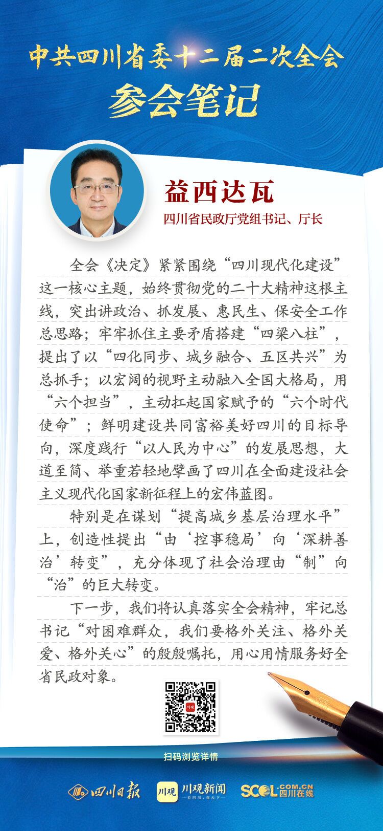 全会参会笔记|四川省民政厅厅长益西达瓦:用心用情服务好全省民政对象