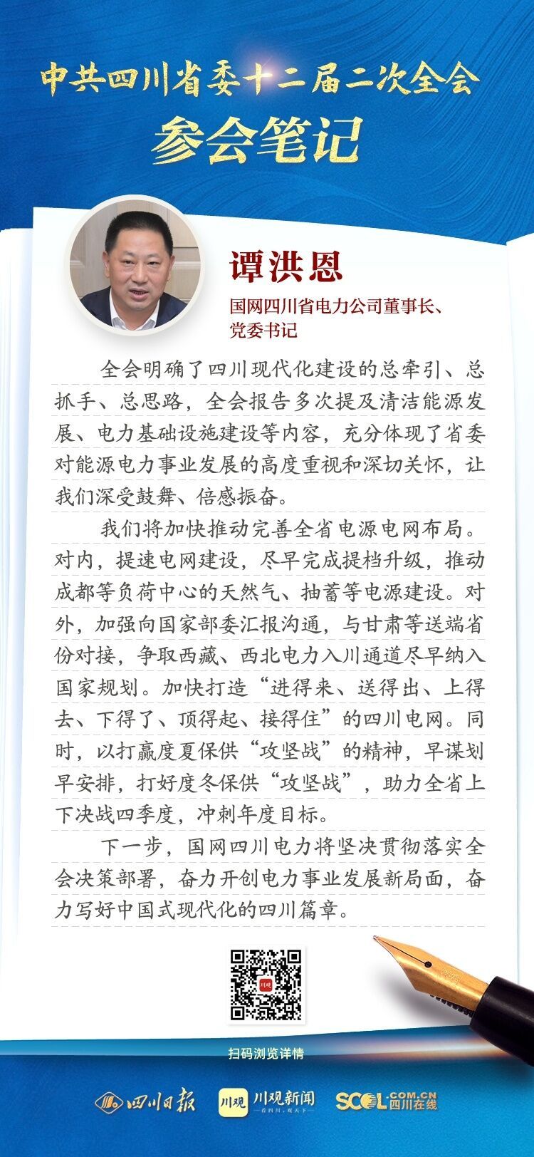 全会参会笔记丨国网四川省电力公司董事长、党委书记谭洪恩:奋力开创电力事业发展新局面