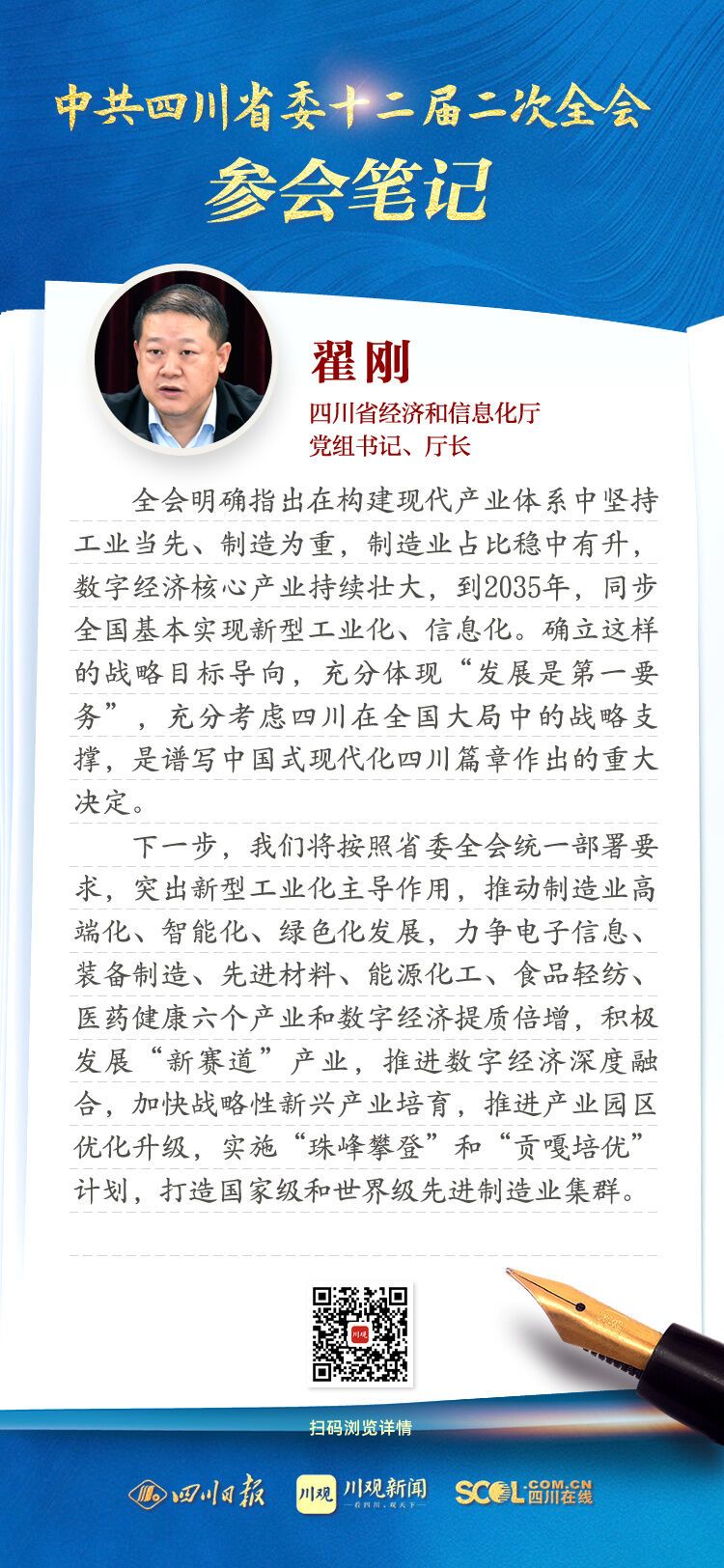 全会参会笔记丨四川省经济和信息化厅党组书记、厅长翟刚:突出新型工业化主导作用