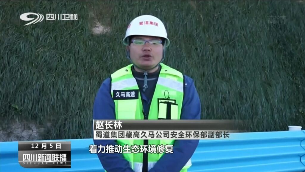 蜀道集团藏高久马公司安全环保部副部长 赵长林:在落实环水保各项措施同时,着力推动生态环境修复,科学保护和剥离草甸,积极应用植物纤维网,实施坡面植被恢复,并初见成效。