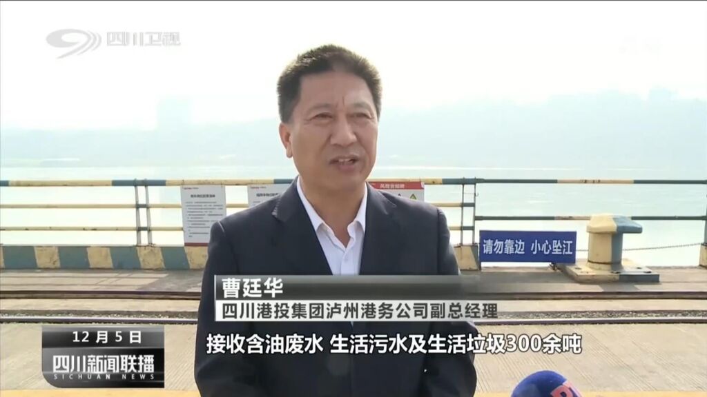 四川港投集团泸州港务公司副总经理 曹廷华:实现了港口岸电全覆盖,实现了靠港船舶“零排放”,每年接收船舶500余艘次,接收含油废水、生活污水及生活垃圾300余吨,真正实现不让一滴污水流入长江。
