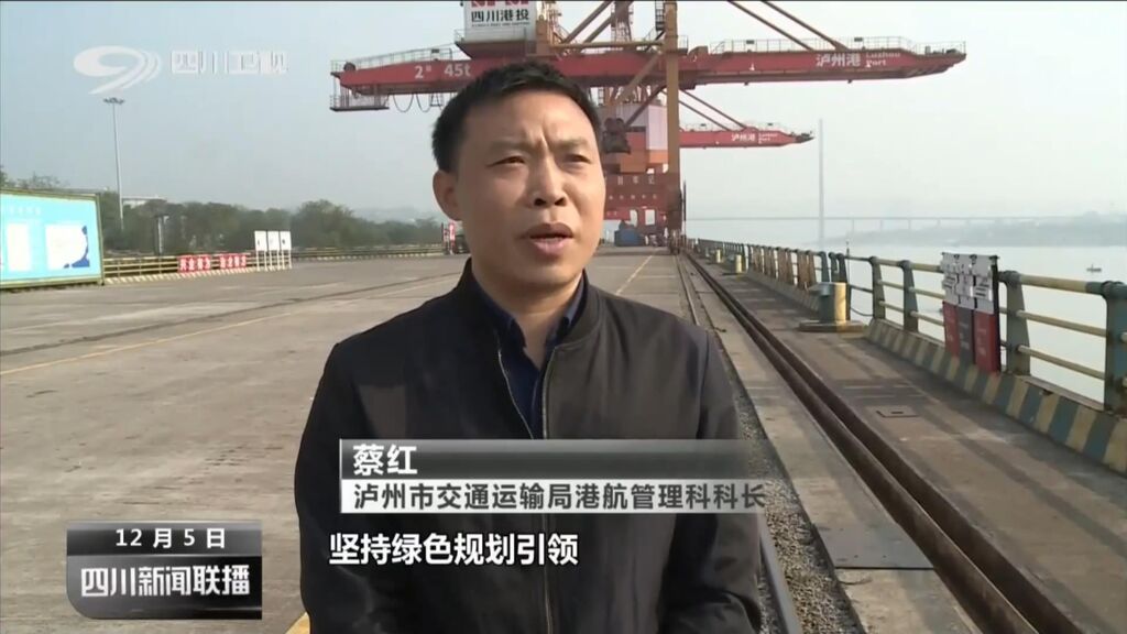 泸州市交通运输局港航管理科科长 蔡红:坚持绿色规划引领,启动了《泸州港总体规划》修订,新增支持系统和绿色发展岸线10.7公里,科学布局船用LNG加注站,化学品洗舱站,打造“零碳”港口。