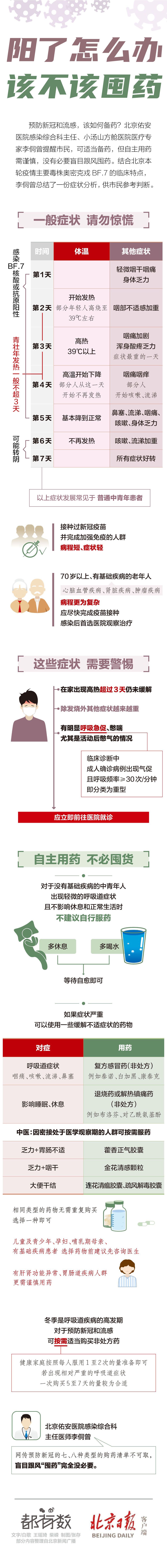 预防新冠和流感,该如何备药?北京佑安医院感染综合科主任、小汤山方舱医院医疗专家李侗曾提醒市民,可适当备药,但自主用药需谨慎,没有必要盲目跟风囤药。结合北京本轮疫情主要毒株奥密克戎BF.7的临床特点,李侗曾总结了一份症状分析,供市民参考判断。
