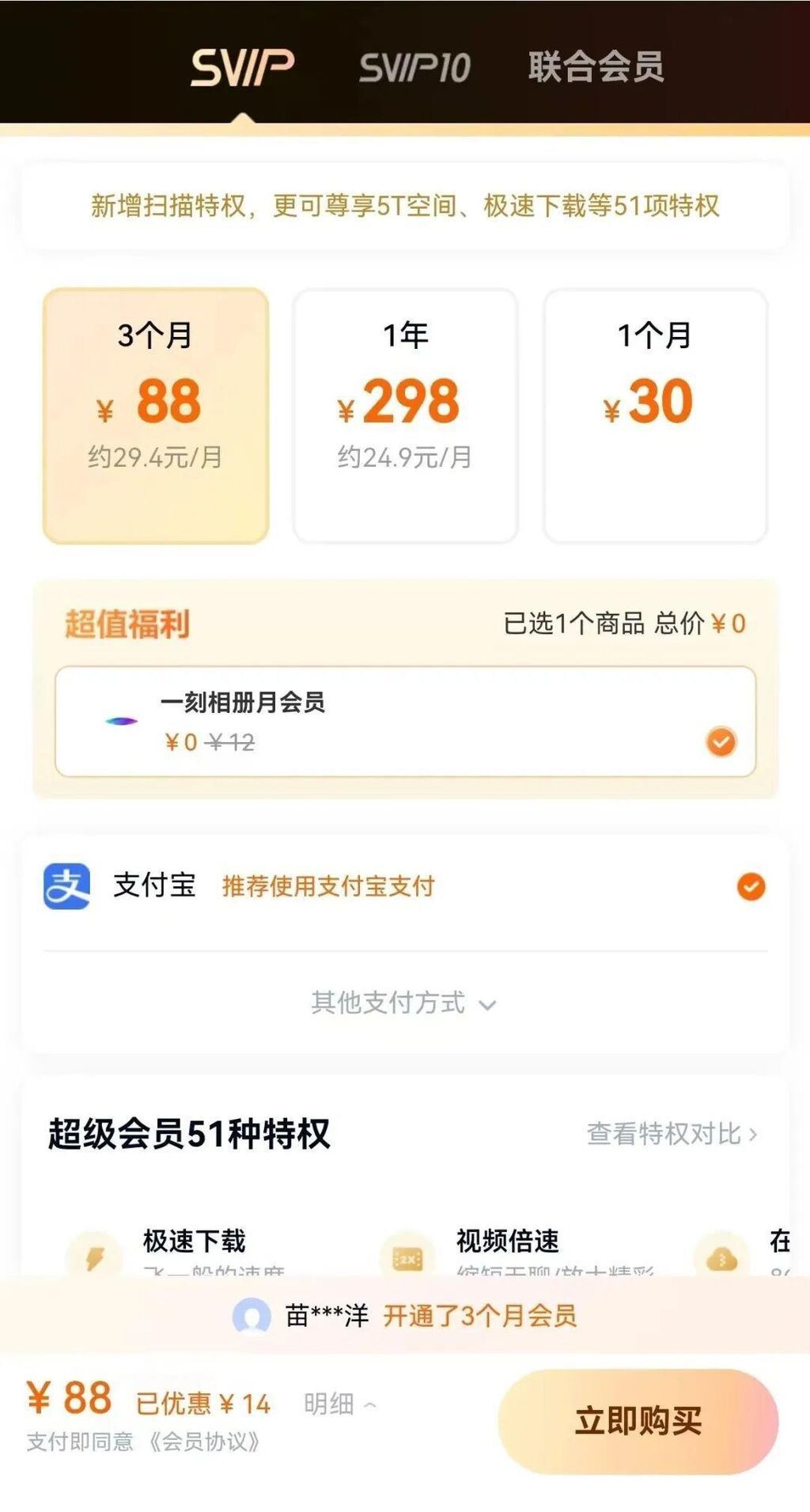 至少要买一个月会员