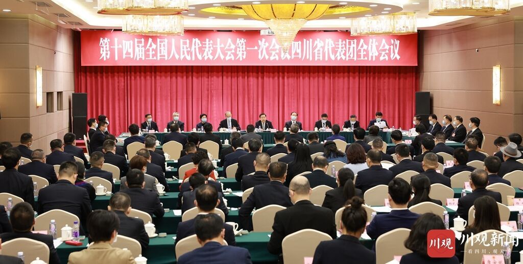 3月4日下午,十四届全国人大一次会议四川代表团在驻地举行全体会议。省委书记、省人大常委会主任、代表团团长王晓晖主持会议,省委副书记、省长、代表团副团长黄强出席。