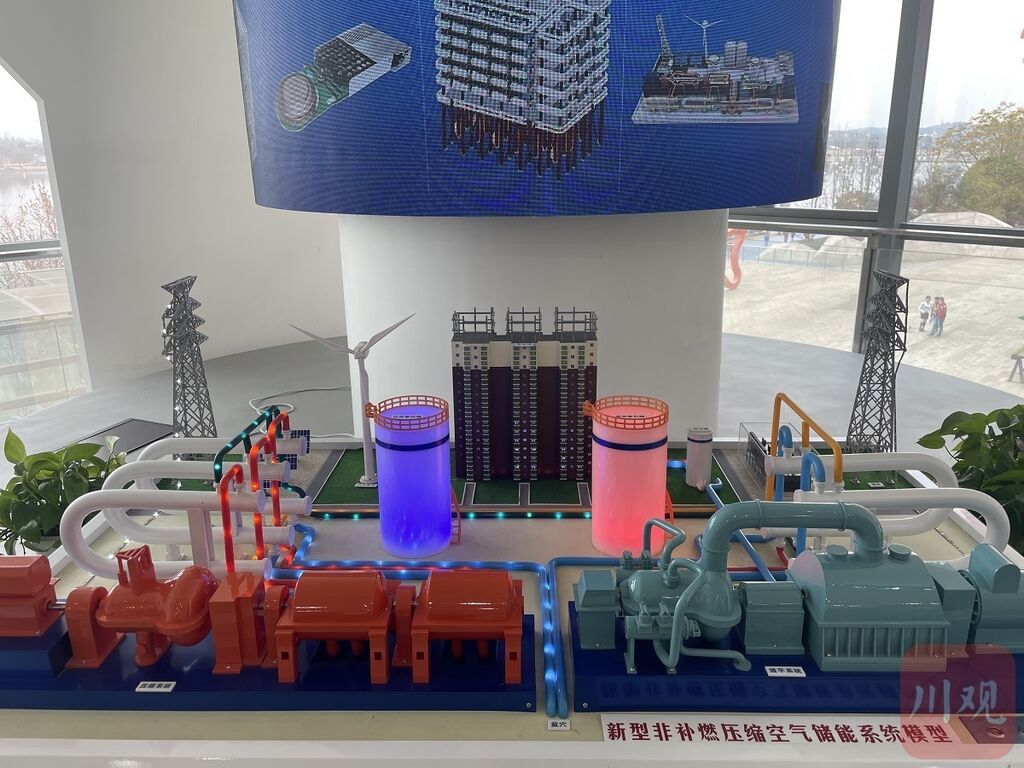 在清华四川能源互联网研究院一楼的成果展示厅内,一套特别的储能发电装置模型引起大家注意。这套装置的地上设备和一般的大型机械类似,特别之处在它的地下部分。“这是一种新型的压缩空气储能装备。”清华四川能源互联网研究院院长助理、科技创新部主任吕岚春介绍,地下部分就是储存压缩空气的地方,特别在于它并非重新挖掘的,而是利用已经存在的“盐穴”。