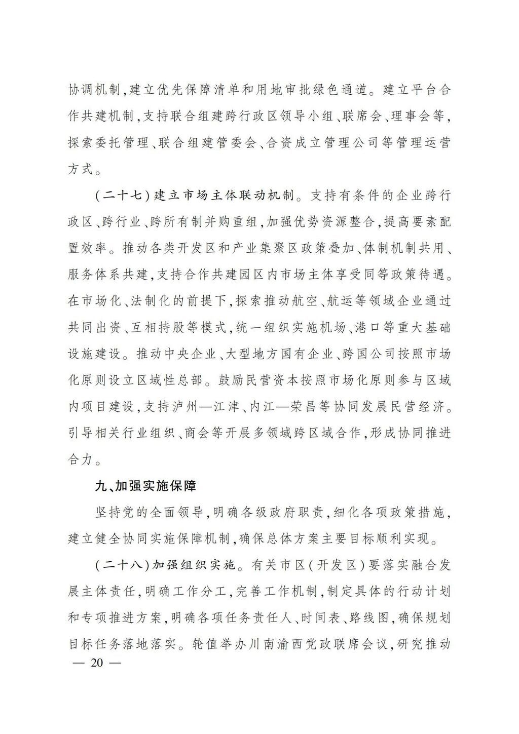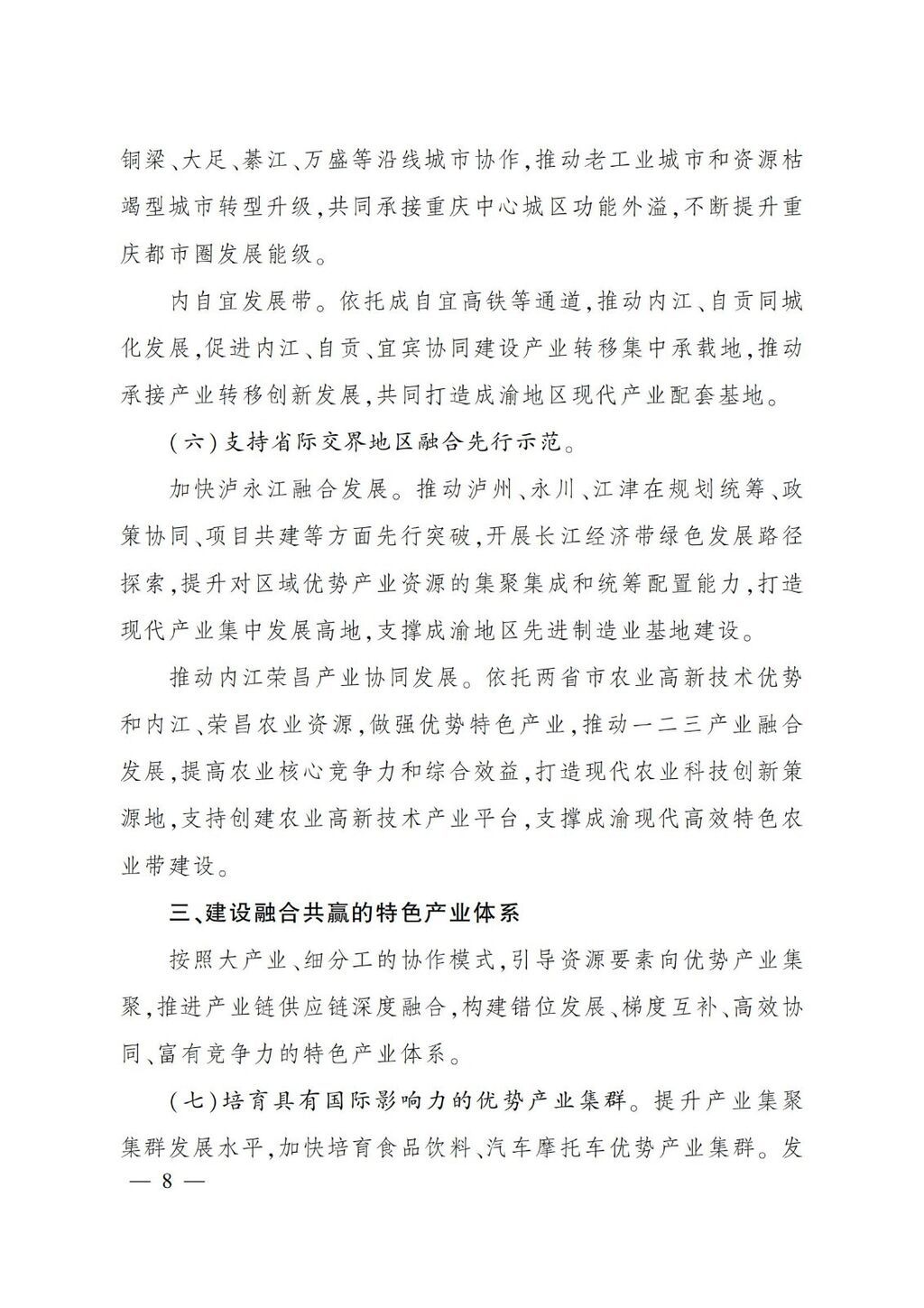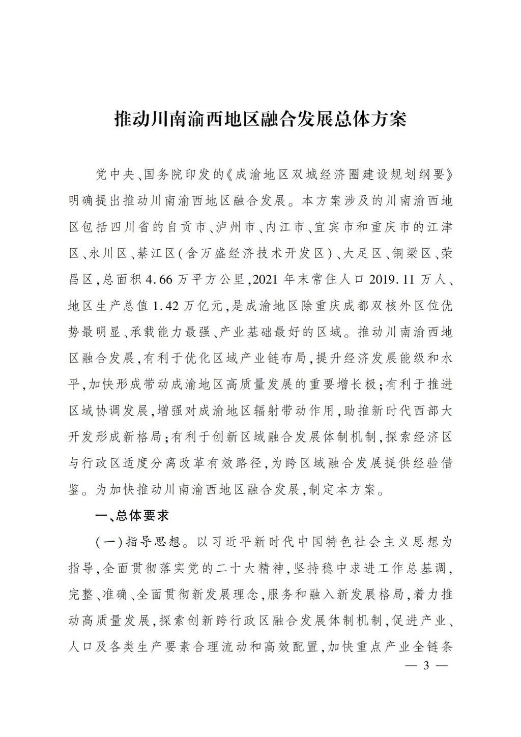 关于印发推动川南渝西地区融合发展总体方案的通知