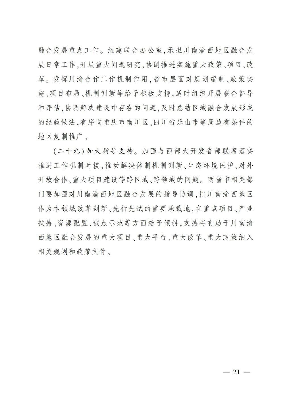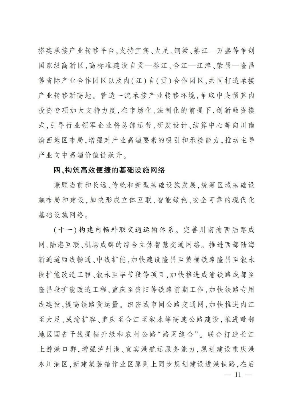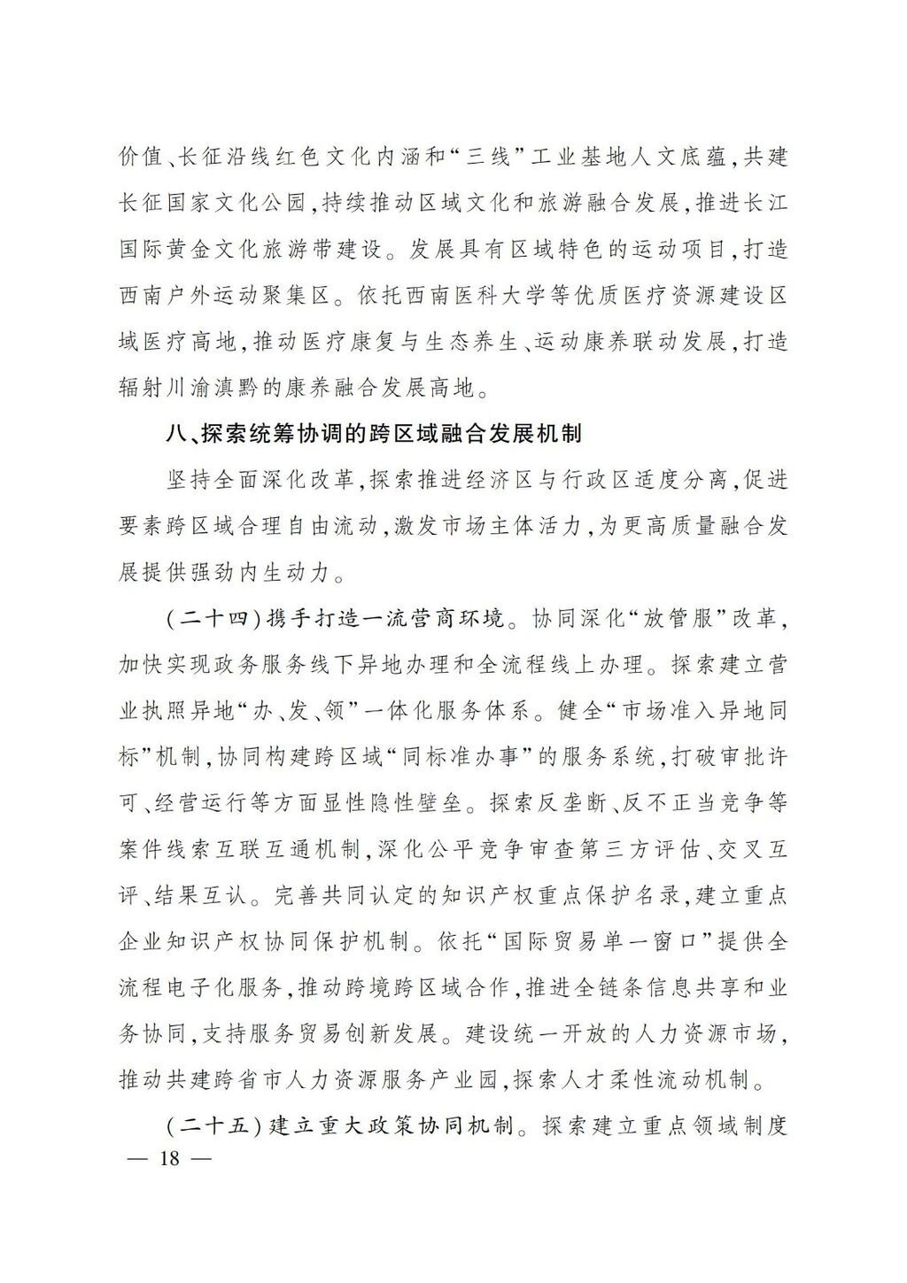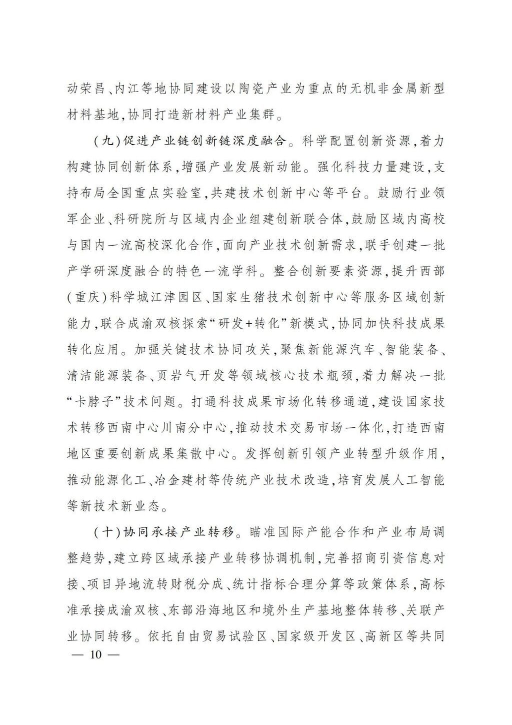 关于印发推动川南渝西地区融合发展总体方案的通知