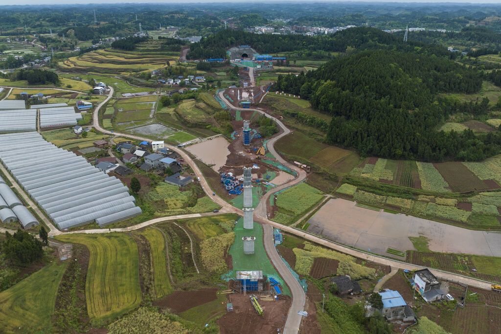 航拍建设中的成达万高铁。成达万高铁公司供图