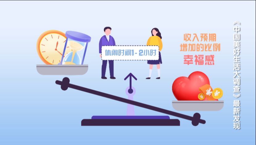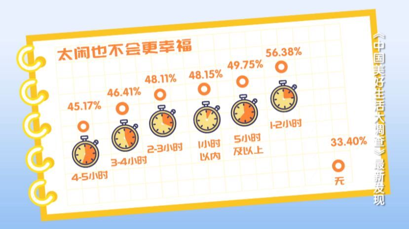 最让人羡慕的是休闲时间在1-2小时的人群,他们不仅幸福感高,收入预期增加的比例也最高。