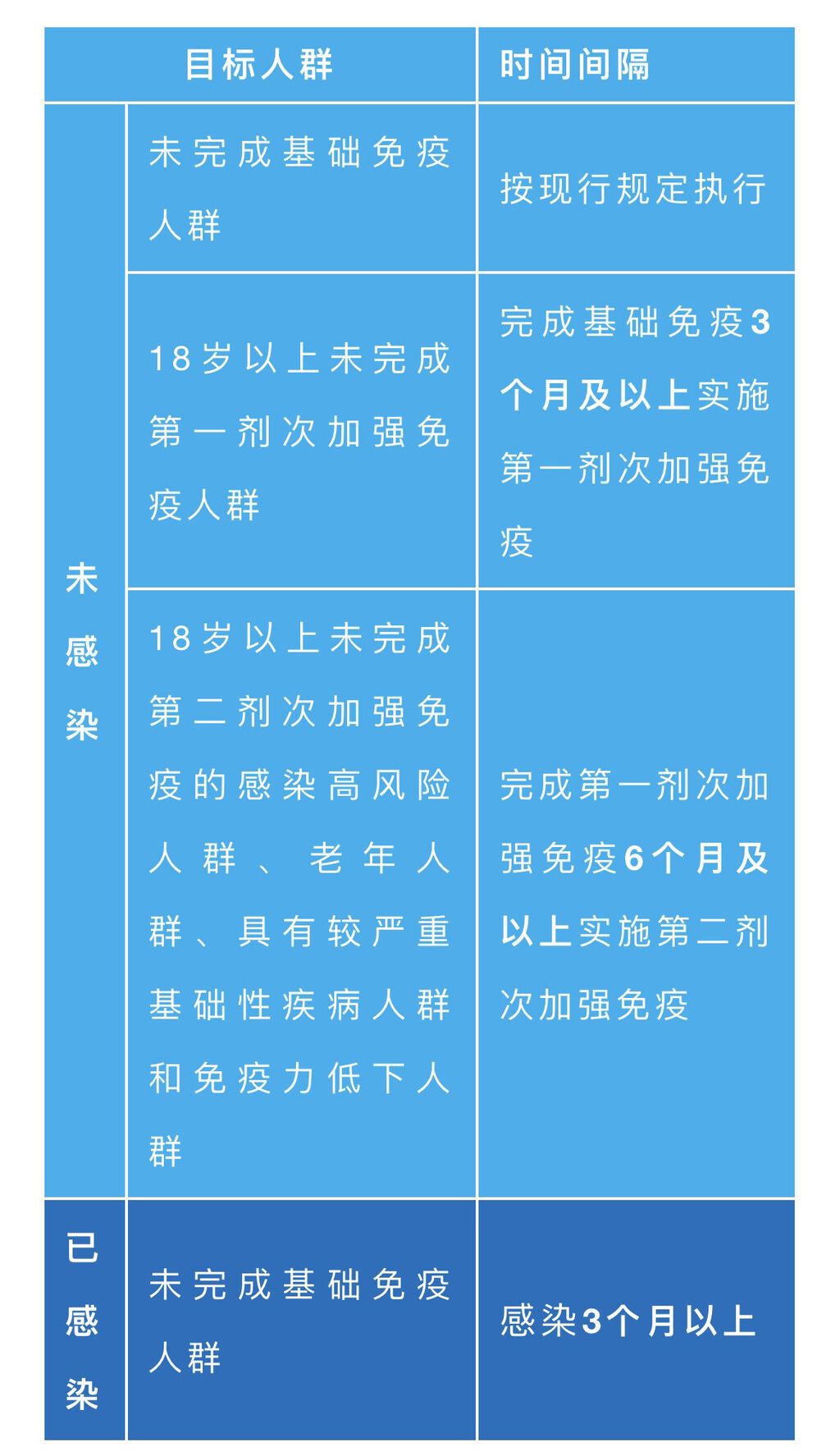 新冠疫苗接种目标人群和时间间隔一览表