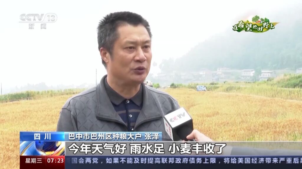 四川省巴中市巴州区种粮大户 张泽:今年天气好,雨水足,小麦丰收了,像这样一亩地产量500公斤,在去年的基础上增加了50公斤左右,这对于我们山区来说,非常不容易。
