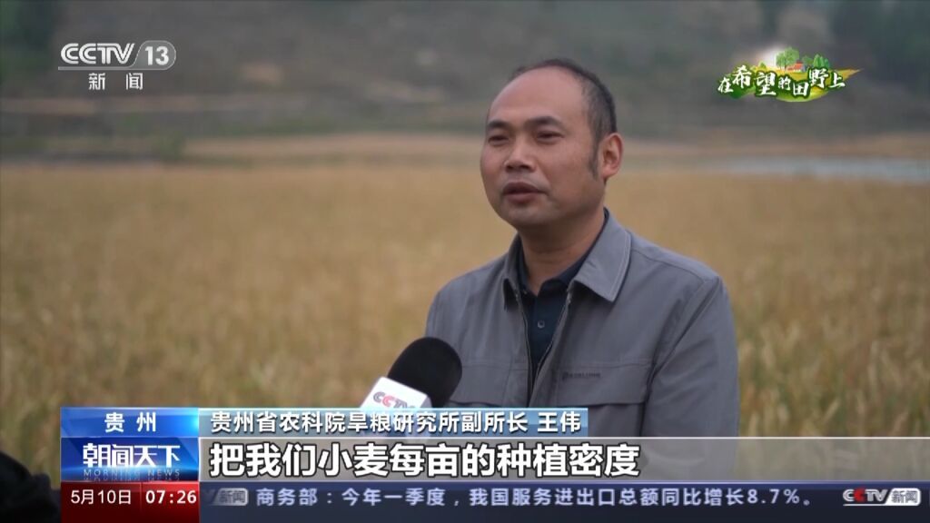 总台央视记者 刘成:我现在是在贵州纳雍县百兴镇的一片麦田里,眼下这里的小麦已经开始收割,与平原地块所不同,我身后的这一片近二十亩的小麦田,在贵州已经算是连片种植小麦面积比较大的地块了。因此,挖技术、选良种是当地提高粮食产量重要的突破口。