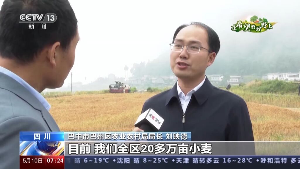 巴中市巴州区农业农村局局长 刘映德:目前,全区20多万亩小麦已全面进入收割期,我们组织了700多台联合收割机,正全力抢收,确保颗粒归仓。