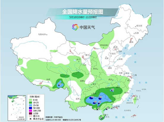 今起(5月10日)至13日,我国江南南部及华南等地将迎新一轮降雨过程,其中广东、广西部分地区可能有大到暴雨,公众应尽量远离山区等次生灾害易发区,同时警惕强降雨可能引发的城市内涝。气温方面,12日前后,我国大部地区气温将转为较常年同期偏高,下周初北方将迎今年首轮高温天气。
