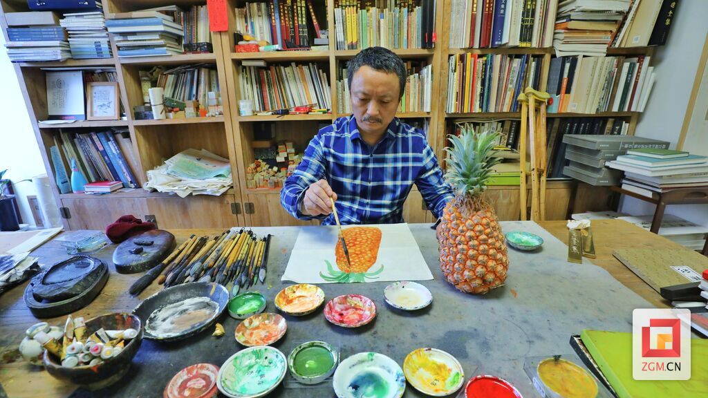 4月底,记者见到吕三时,他正在准备由北京荣宝斋本部举办的作品展,包括绘画、书法、篆刻等共计五十余件。