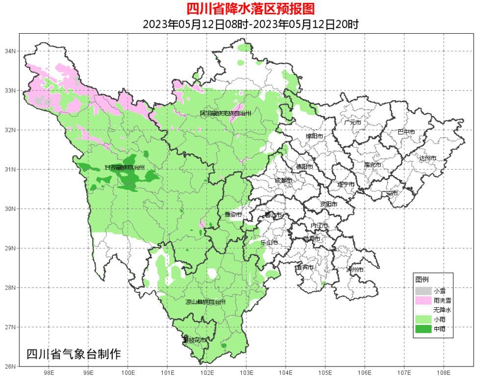 明天白天:盆地大部多云,其中西部沿山早上有分散阵雨;川西高原大部阴天有阵雨(雪)或雷雨,其中甘孜州中部有中雨;攀西地区大部多云转阴有阵雨或雷雨。