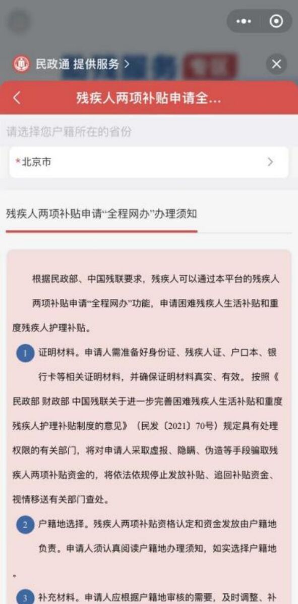 残疾人朋友可在线申请困难残疾人生活补贴和重度残疾人护理补贴。