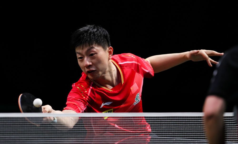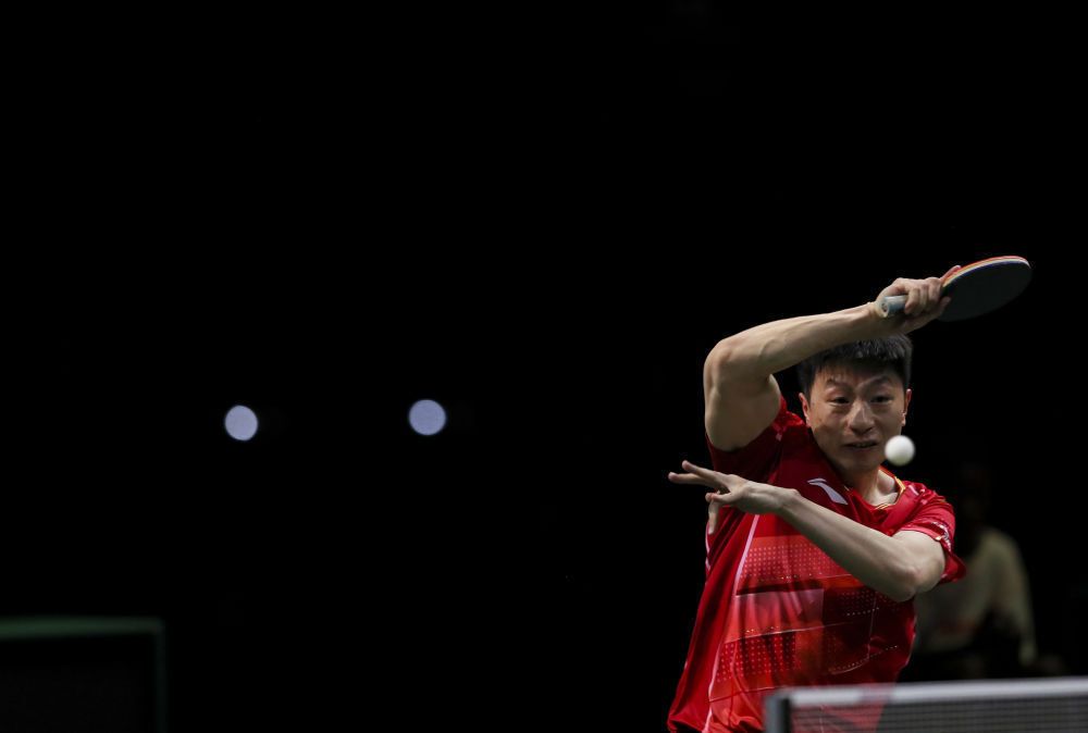 ↑马龙在比赛中回球。新华社记者 张誉东 摄