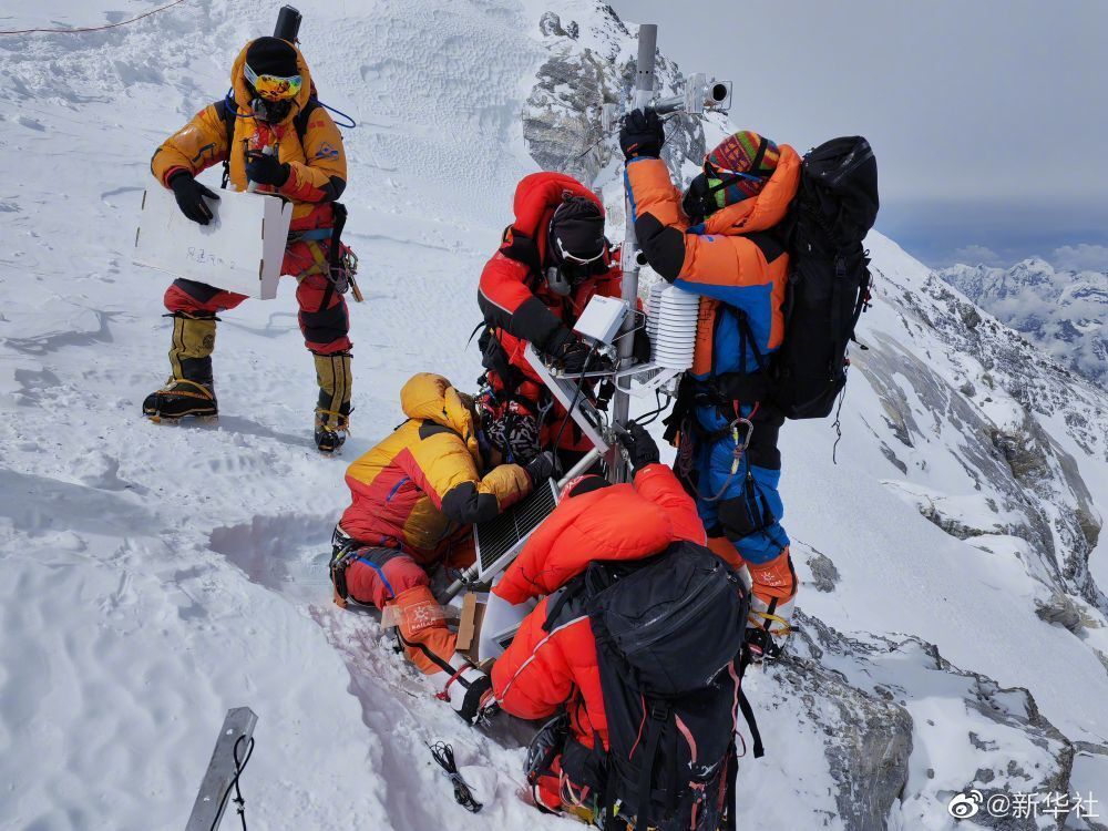 23日凌晨3时,13名科考登顶队员从海拔8300米的珠峰突击营地出发,历经8小时攀登,11时许抵达8830米的世界海拔最高自动气象观测站。固定钢丝绳索,更换蓄电池,安装风速风向传感器……经过约1小时紧张工作,自动气象站维护升级工作全部完成。12时许,4名队员等待气象站数据传输,9名科考队员向峰顶发起冲击。(田金文 聂毅 陈尚才)