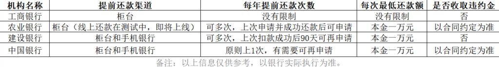 在另外一家支行,工作人员给出的说法略有不同,她证实目前手机银行和网点柜台都可以办理房贷提前还款,且提前还款没有次数限制,但最低还款额为一万元。