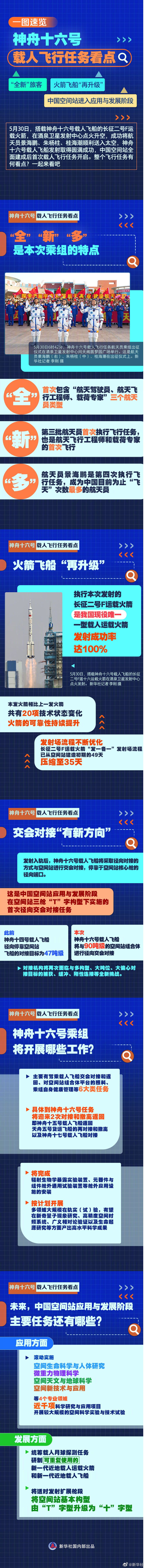 神舟十六号载人飞船发射取得圆满成功,中国空间站全面建成后首次载人飞行任务开启。整个飞行任务有何看点?戳图↓↓一起来看。