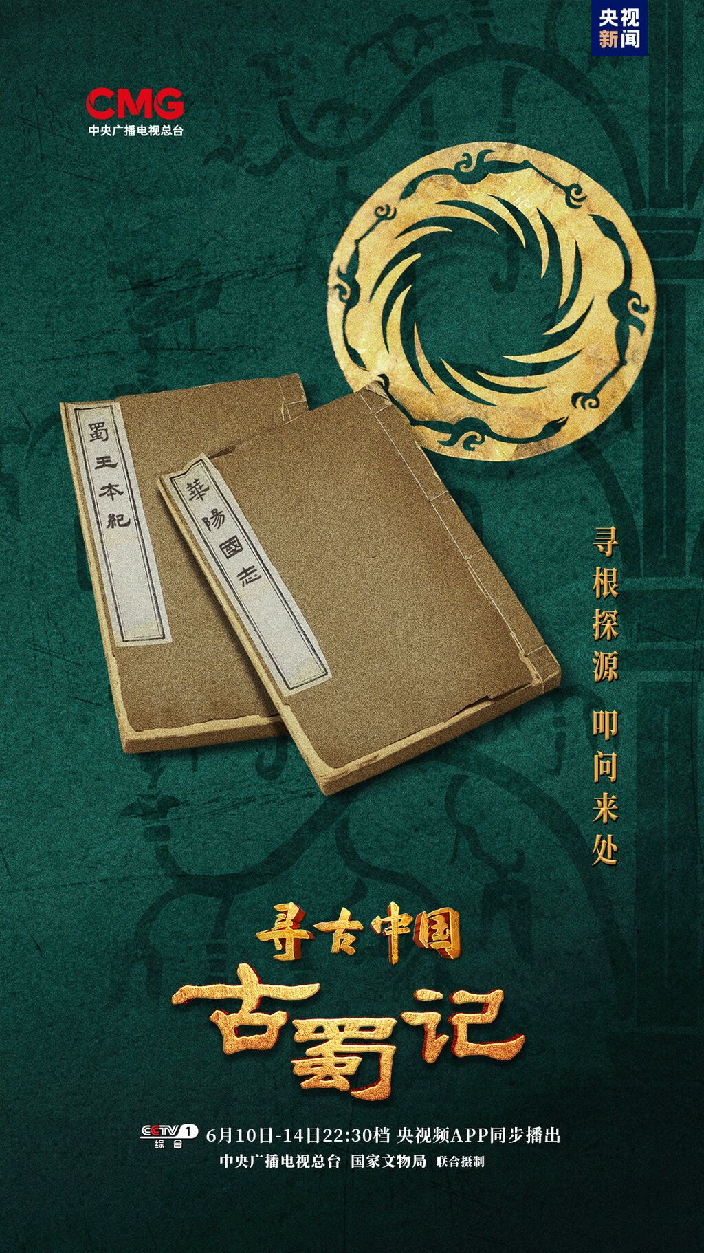 《寻古中国·古蜀记》由中央广播电视总台与国家文物局、中共四川省委宣传部联合摄制。央视频、央视网等中央广播电视总台新媒体平台,将于6月10日起与央视综合频道(CCTV-1)同步播出。