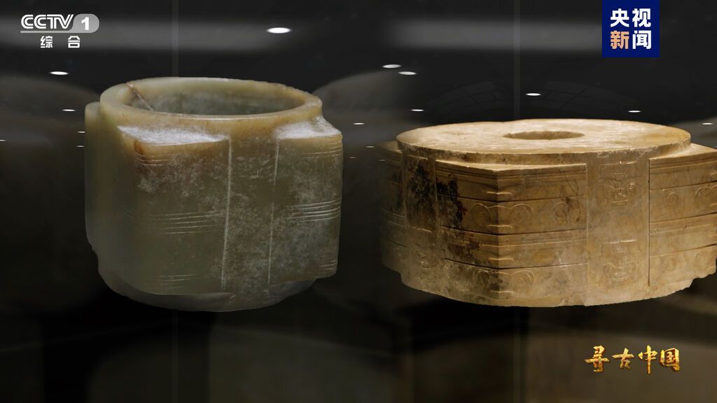 △四川三星堆遗址与浙江良渚遗址出土的玉琮对比