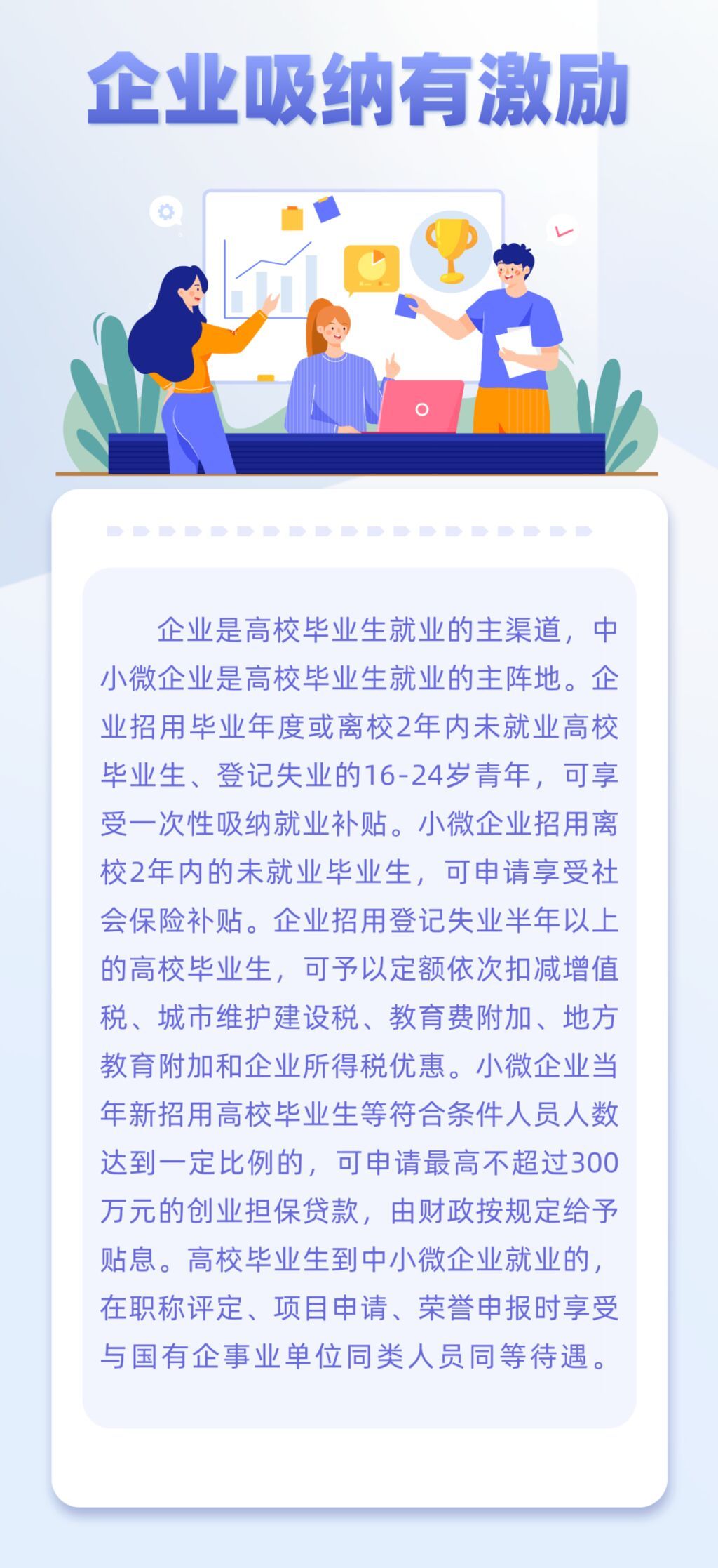 对招用符合条件高校毕业生的小微企业,按其为高校毕业生实际缴纳的社会保险费给予补贴,不包括个人缴纳部分,期限最长不超过1年。
