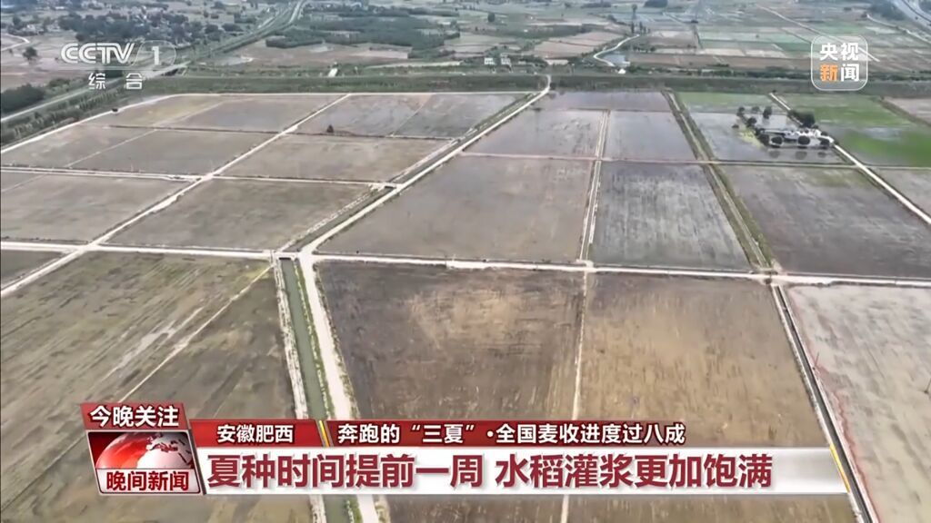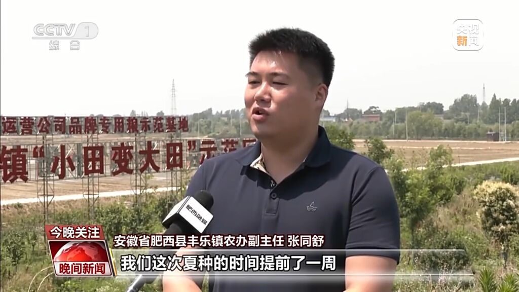 安徽省肥西县丰乐镇农办副主任 张同舒:我们这次夏种的时间提前了一周,为的就是水稻灌浆更加饱满,品质更高。