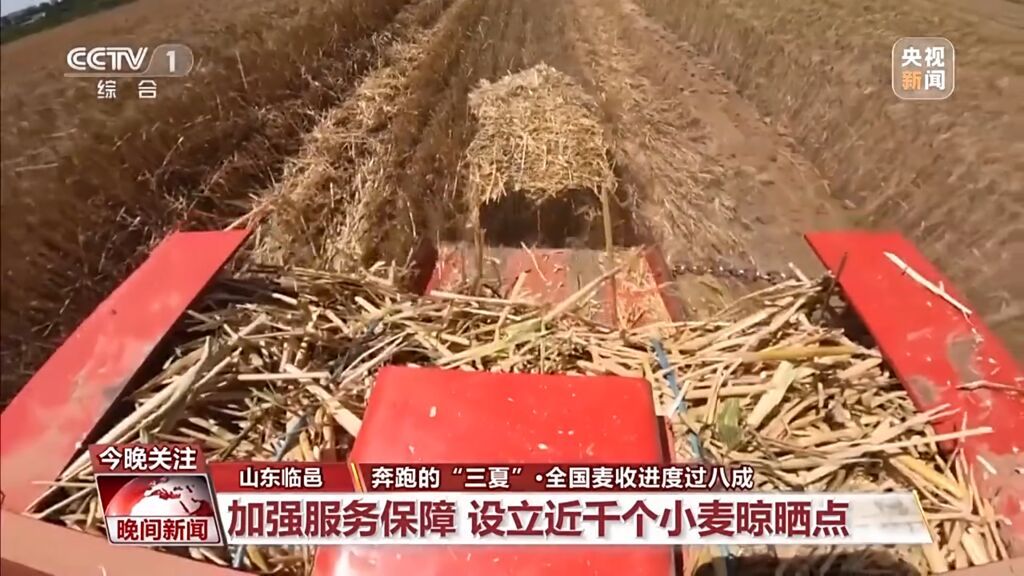 总台央视记者 刘成:在山东省临邑县的高徐村,眼下这里的4500多亩小麦正在抓紧收获。为方便农户晾晒粮食,全县的12个乡镇专门制作了晾晒地图,把清扫后的闲置空地、企业厂房、文化广场等进行标注,村民们通过乡镇政府的公众号就可以查询合理的晾晒点。