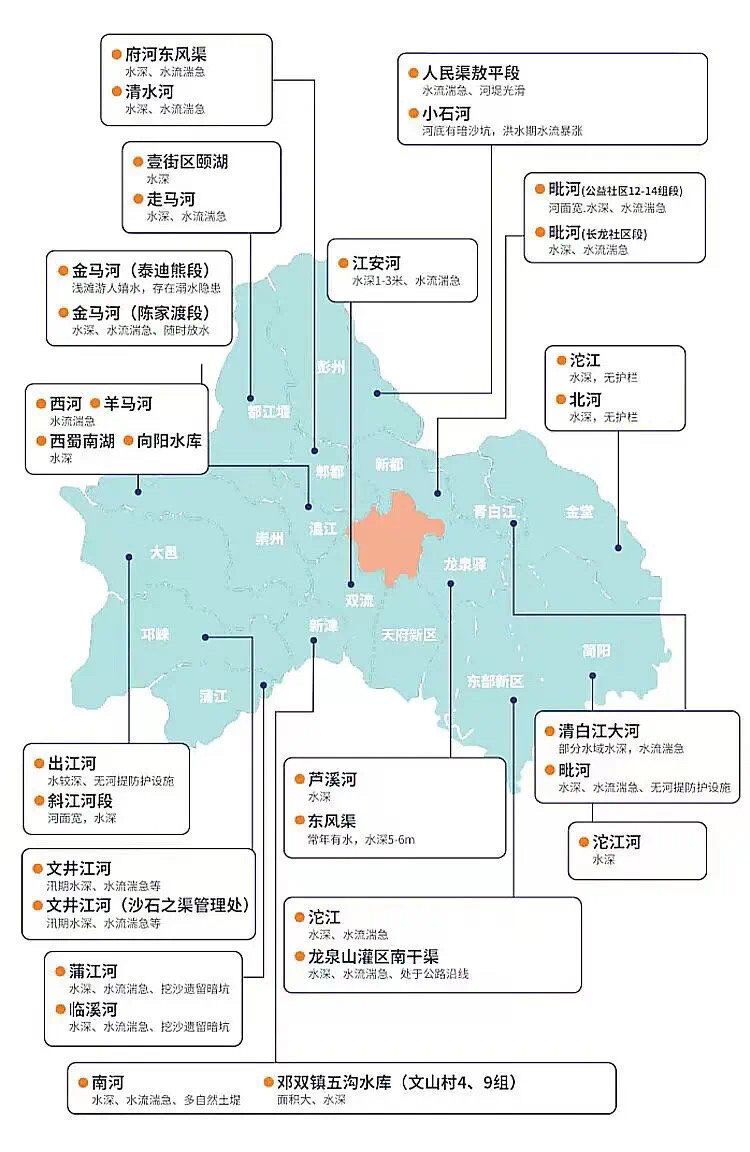 近日,成都市教育局会同成都市水务局共同发布《成都2023年夏季学生防溺水地图》,暑期将至,希望各位家长提高警惕,掌握以上保命秘籍,但愿急救知识永作“备胎”,预防溺水人人有责。