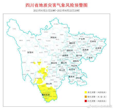 根据四川省地质环境条件,结合四川省气象台天气预报情况,6月21日20时至6月22日20时 ,全省地质灾害气象风险预警结果如下: