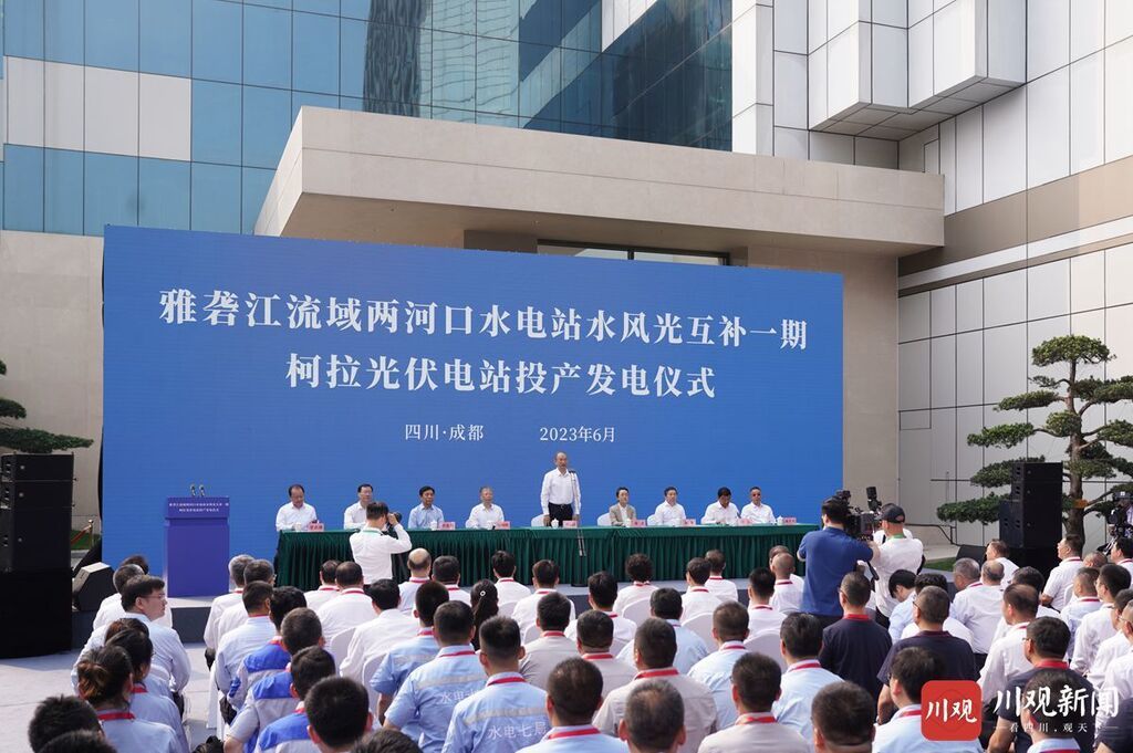 9时25分许,黄强在主会场宣布:雅砻江柯拉光伏电站投产发电。