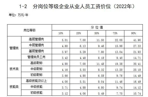 人社部6月25日发布2022年企业薪酬调查信息,公布了不同职业企业从业人员工资价位、不同岗位等级企业从业人员工资价位数据。