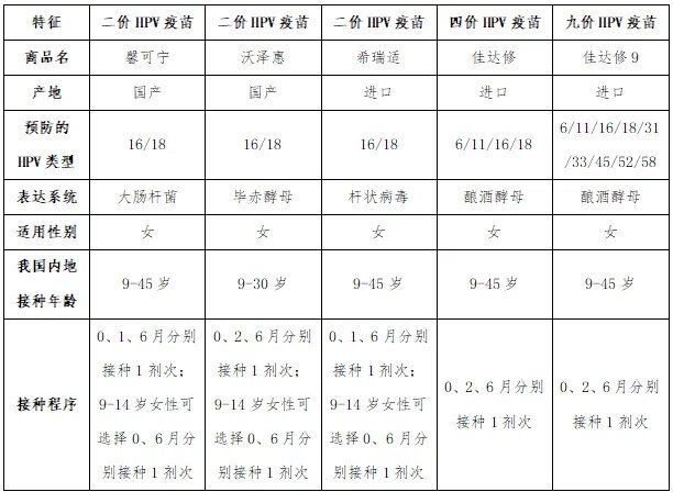 到目前为止,我国内地获批上市的HPV疫苗共有5款: