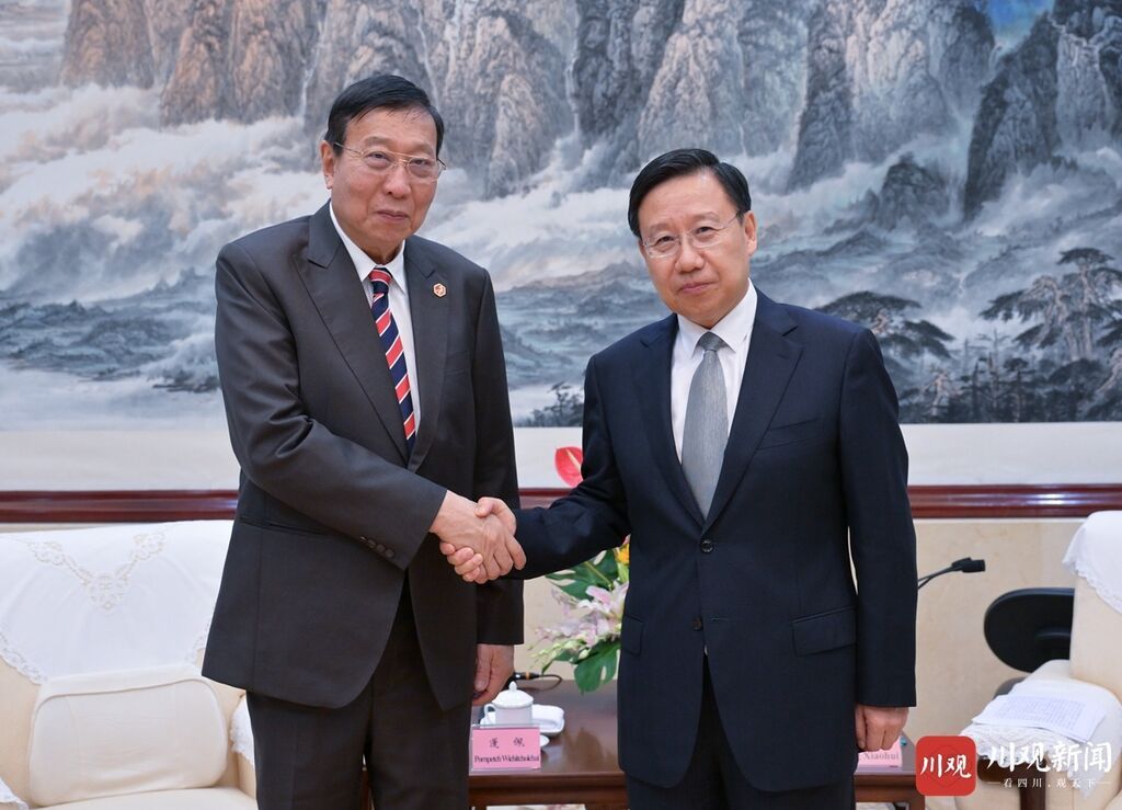 蓬佩表示,非常高兴到四川出席第十九届西博会。泰国高度重视发展对华关系,也十分看好中国西部发展前景和机遇。四川是中国西部重要省份,泰方将加强与四川各方面的合作,立足良好合作基础,深入挖掘各领域合作潜力,努力取得更加丰硕成果,实现互利共赢。