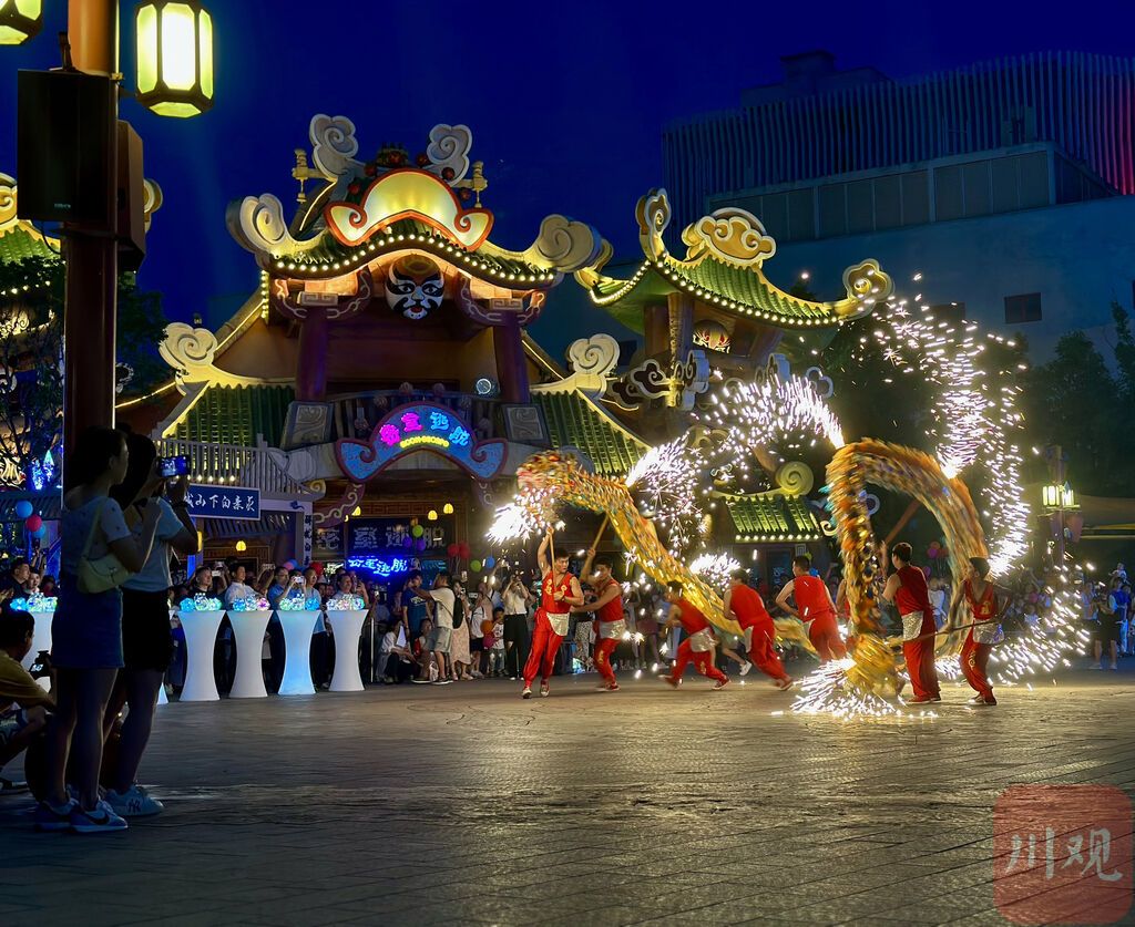 天府国潮夜游节由都江堰文体旅局联合成都融创乐园举办,深入挖掘都江堰本土文化,打造集国潮灯会、国风巡游、花火演艺、炫彩游乐等元素于一体的都江堰夜间旅游消费新场景,进一步激发都江堰旅游市场活力,点亮都江堰“夏日夜经济”。