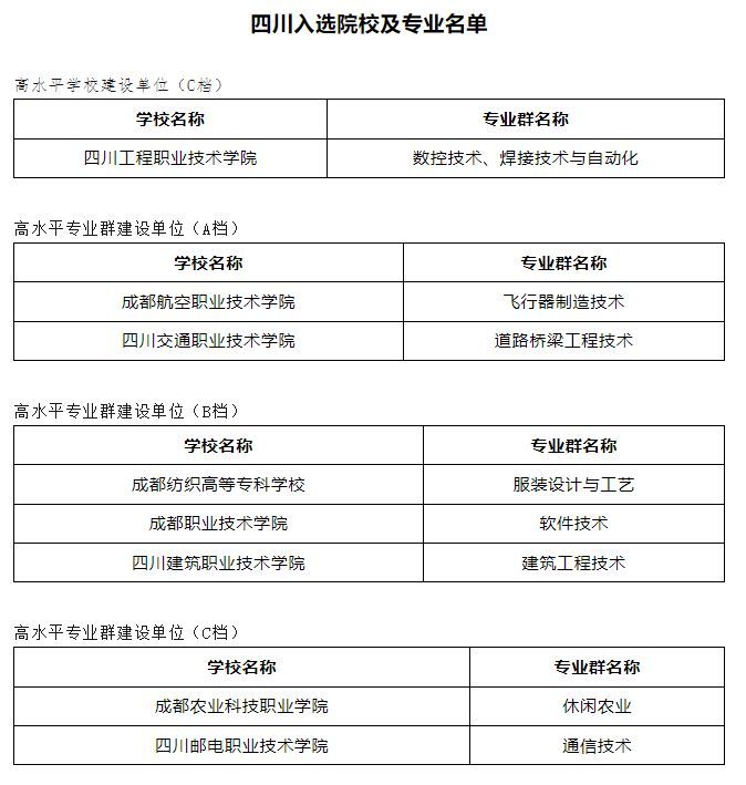 目前,我省专科批次志愿填报正在进行。高职(专科)院校数量众多,为了给考生和家长选择院校提供参考,四川省教育考试院整理了我省及全国进入教育部“双高计划”的院校和专业名单。