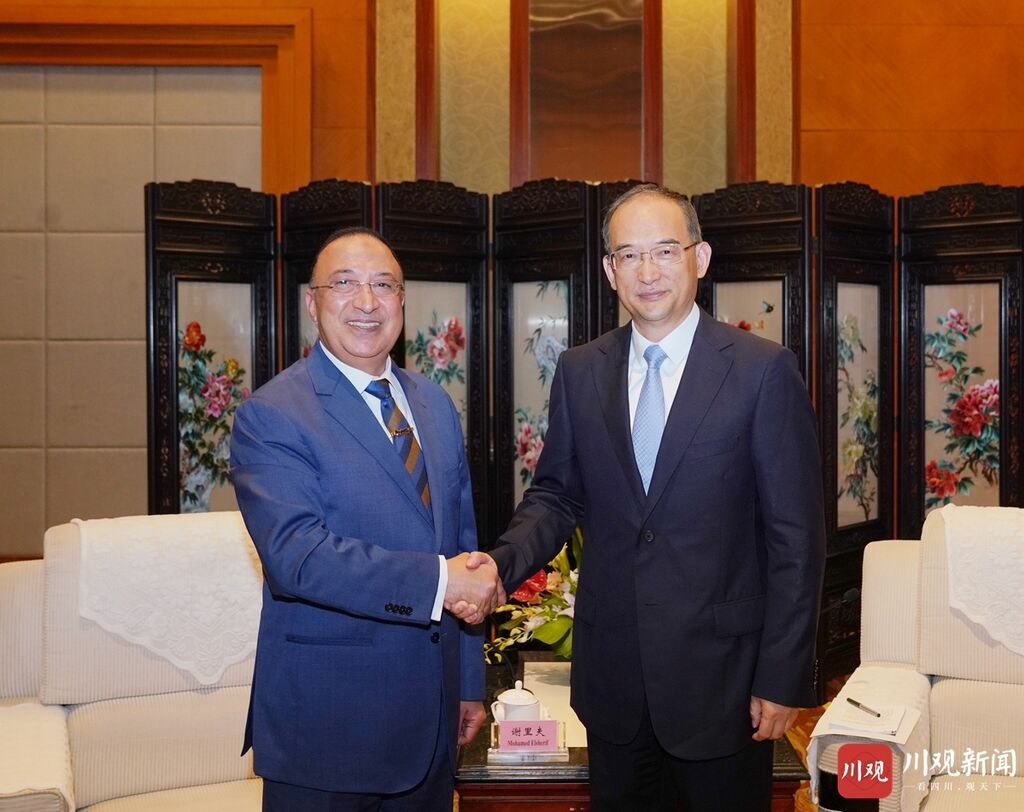 黄强对谢里夫省长首次来川访问表示欢迎,并简要介绍四川发展情况特别是面临的重大机遇和拥有的独特优势。他说,中埃两国建交以来始终守望相助、携手前行,川亚两省友好合作也取得了长足发展。两省资源禀赋、经济结构和发展优势互补性强,合作前景广阔。希望以省长阁下访川为契机,进一步密切政府关系,搭建交流合作平台,助推企业更好“唱戏”;保持高层互访,尽早缔结友好关系;聚焦道路、桥梁、电站、港口等基础设施建设运营和清洁能源、特色农业开发等领域,持续扩大经贸投资和产业合作;加强游客互动、资源互联,鼓励更多游客到彼此城市旅游观光,不断开启交流合作新篇章。