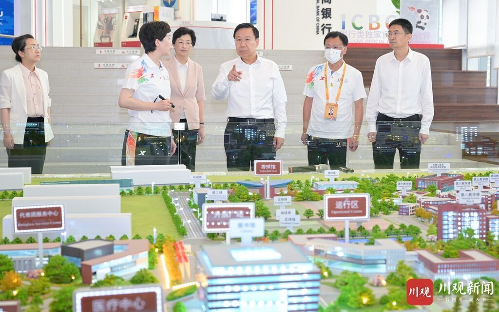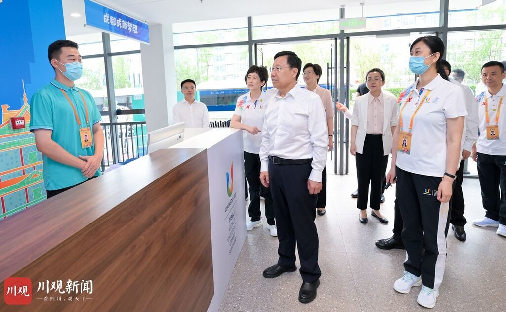 大运村是大运会服务保障的重要功能载体,将为参赛代表团提供安全、舒适的工作和生活环境,同时开展系列文化交流活动。在大运村欢迎中心,王晓晖结合观看沙盘,检查了解大运村功能设施布局和运行筹备情况。随后,他来到运动员餐厅、运动员公寓、文化互动体验中心,检查餐饮和住宿保障、文化交流活动筹备等工作。他指出,除了参赛、备赛,运动员、教练员等参赛人员大量时间都在大运村,舒适安全的环境至关重要。要坚持以人为中心,把工作做得细之又细,为大家提供方便、快捷、精准、周到的服务,让他们以更好的精神状态参加比赛。要精心办好系列文化交流活动,讲好中国故事、四川故事,让各国参赛人员更好了解中国、了解四川,在文化交流中加强互动、增进友谊,留下四川之行的珍贵记忆。