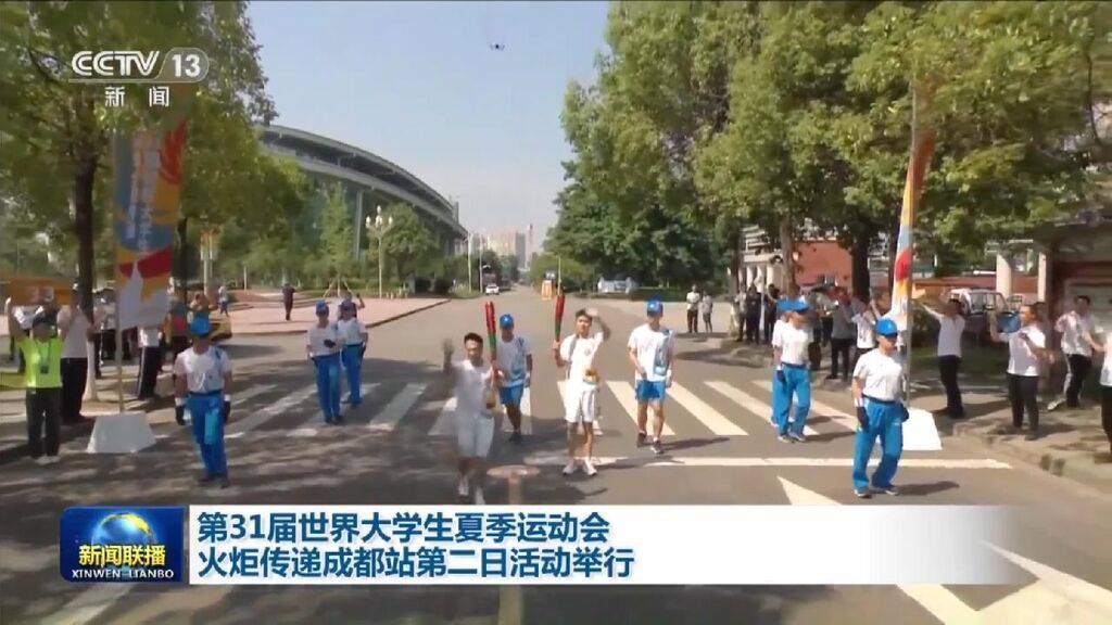 今天,第31届世界大学生夏季运动会火炬传递成都站第二日活动举行。传递活动在四川师范大学成龙校区、成都航空职业技术学院、四川旅游学院及成都信息工程大学龙泉校区四所学校接力进行,共有来自体育、教育、科技等多个领域的121名火炬手参与。
