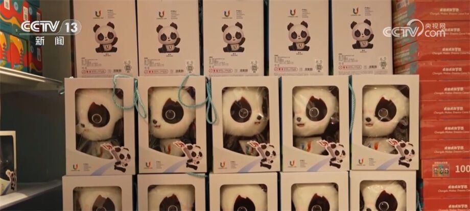 大运会执委会宣传部专职副部长 苗峪源:目前,成都大运会通过特许经营计划,面向社会广泛招募了非遗传承企业、冬奥冰墩墩文创出品企业、顶尖文创企业等80家特许经营企业。围绕吉祥物“蓉宝”主题,累计推出玩具类、徽章类、文具类、邮票邮品类等18大系列1000余款特许商品,衍生开发了“蓉宝”系列手办、“蓉宝”冰淇淋、“蓉宝”主题邮票邮品、大运立体书等爆款特许商品,并累计在城市商圈、热门景区、地铁站内等区域开设特许商品零售店(点)400多家。