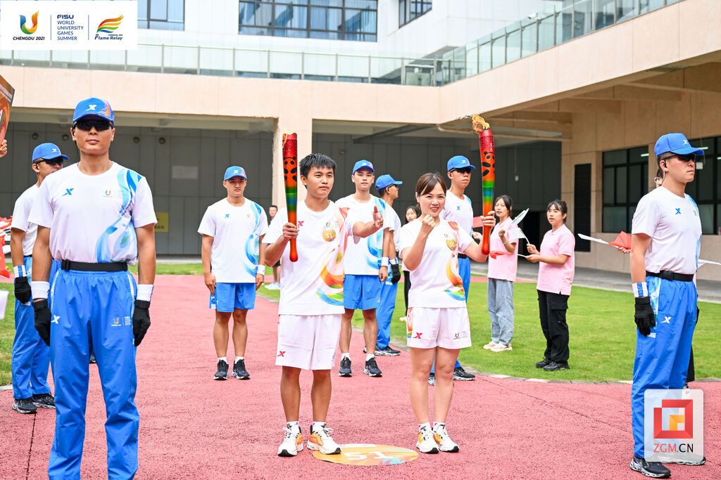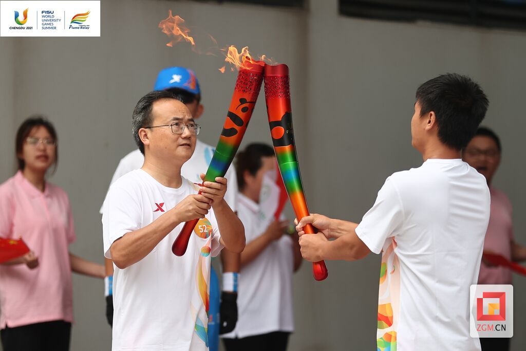 7月14日上午,成都第31届世界大学生夏季运动会火炬传递四川交通职业技术学院站,自贡残疾运动员、四川省残运会跳绳项目金牌得主肖祥安,作为第51棒火炬手顺利完成火炬传递。