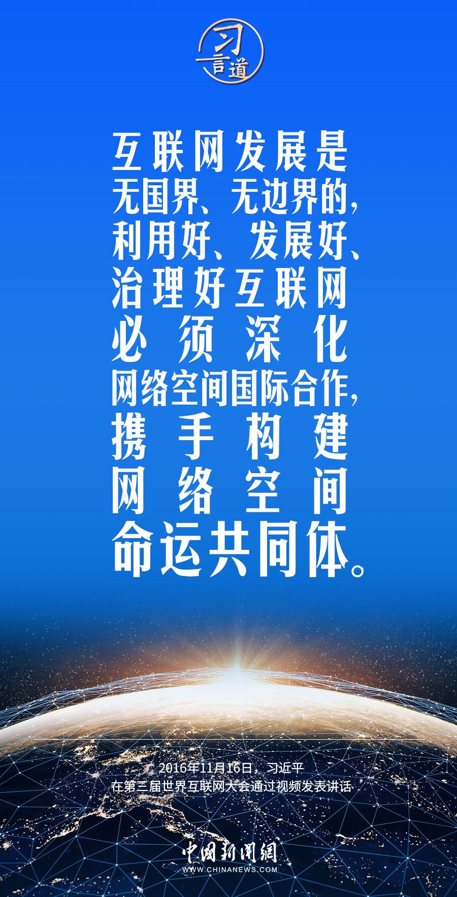 习近平总书记高度重视网络空间国际合作,多次作出重要论述,强调要加快构建网络空间命运共同体。