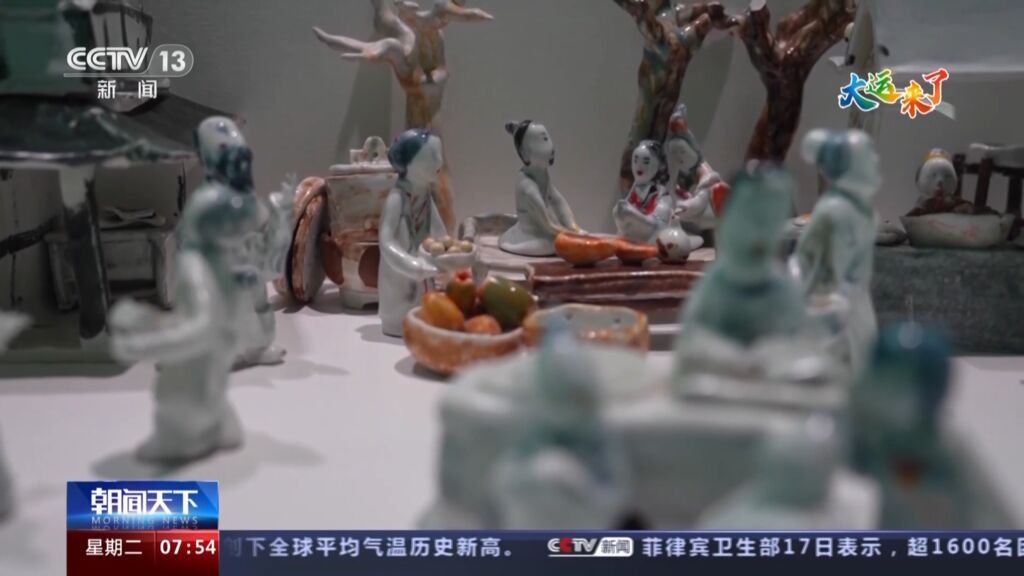 总台记者 白璐:展览分为九大板块,其中一个板块叫未来考古,把未来与考古放在在一起是不是很奇妙的组合,艺术家们会如何表达。另一作品叫别院,是一位90后的艺术家创作的,他选用了一个非常具有中国代表性的材质陶瓷进行了创作。还有作品叫蜀都大戏,非常具有巴蜀特色,是用棉签做成的。