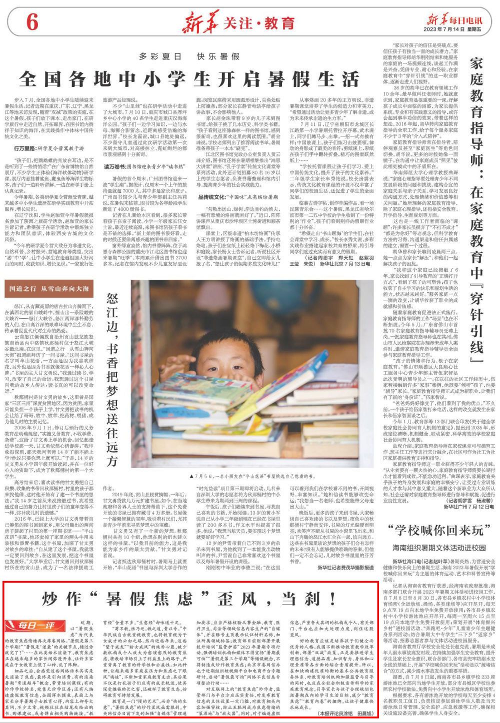近期,以“暑假焦虑”为代表的教育焦虑情绪再次席卷网络。“暑假是第三个学期!”“暑假是‘逆袭’的关键节点,错过你就完了!”……在此类话术渲染下,教育焦虑正在越来越多的家长间弥漫开来,让许多家庭在子女教育上慌了心神、乱了阵脚。