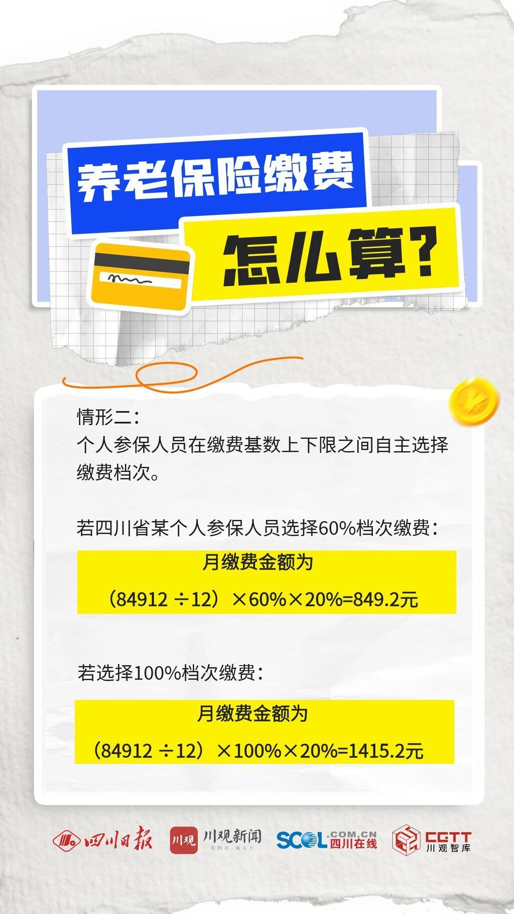 若四川省某个人参保人员选择60%档次缴费,则月缴费金额为(84912÷12)×60%×20%=849.2元。